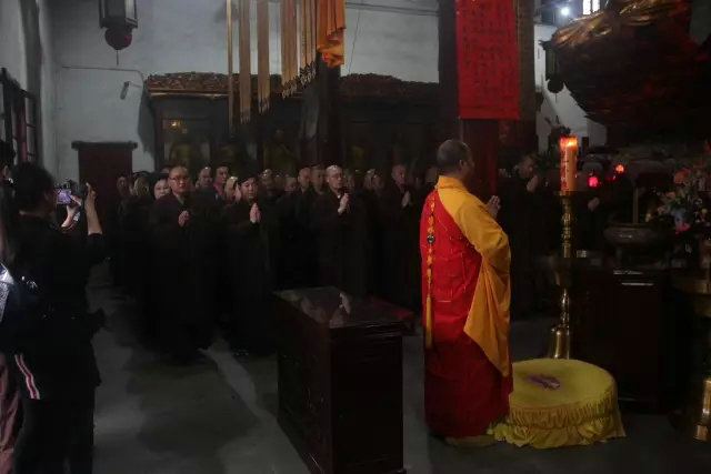 浴佛節(jié)法會由真如禪寺方丈純聞法師主法。純聞方丈帶領(lǐng)僧眾、信眾行至大雄寶殿,在鐘鼓齊鳴聲中,莊嚴(yán)請出釋迦太子像至正覺苑。在正覺苑內(nèi),純聞方丈拈香禮佛,與寺院僧眾及諸位善信一起贊佛誦經(jīng)、祝圣繞佛、唱浴佛偈。僧眾、信眾跟隨主法者腳步,依次浴佛禮拜。