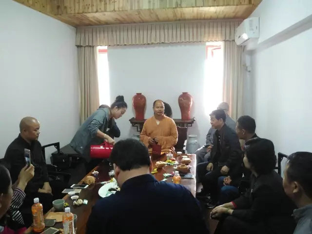 飲食素齋過后,純聞法師在方丈院會客室,與協(xié)會會長一行茶敘,參禪講學(xué)。為大家介紹了云居山·真如禪寺的歷史由來、發(fā)展及農(nóng)禪特色。據(jù)介紹,云居山屬宗教游覽、休閑觀光的山岳型國家重點風(fēng)景名勝區(qū),為中國著 名佛教名山。真如禪寺乃千年禪宗祖庭,自唐憲宗元和三年肇基,秉承釋迦世尊“教外別傳,以心印心”之頓教法門,立“人人皆有佛性,皆可成佛”之大乘宗旨。寺院高僧輩出,禪風(fēng)浩然。中國佛教協(xié)會第1任名譽會長虛云禪師、常務(wù)理事性福大和尚、全國政協(xié)委員海燈法師相繼擔(dān)任過該寺住持,原中國佛教協(xié)會會長一誠法師、傳印法師等大德都執(zhí)掌過真如法席。